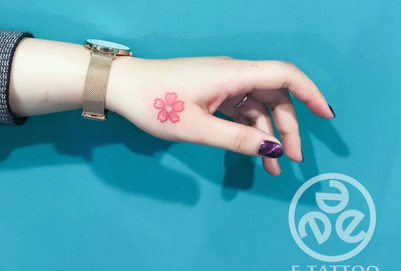 • 手背潮流时尚的玫瑰花眼睛纹身图案