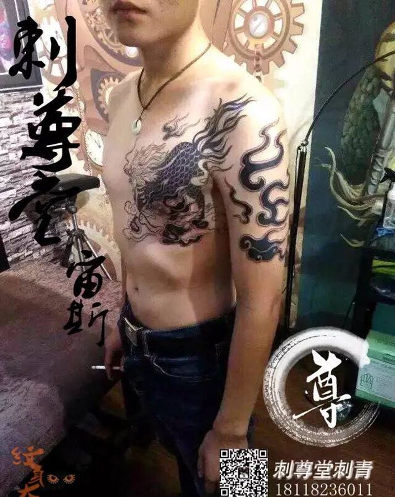 • T云龙九郎纹身图片_背部老传统云龙九郎纹身图案
