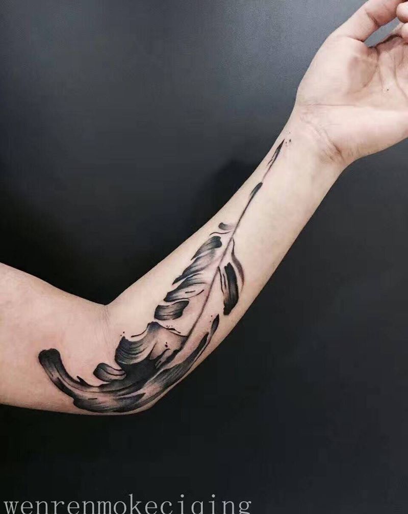 当前位置: 首页 >江苏省扬州市纹身店-纹人墨刻TATTOO纹身图案>泼墨羽毛纹身图片