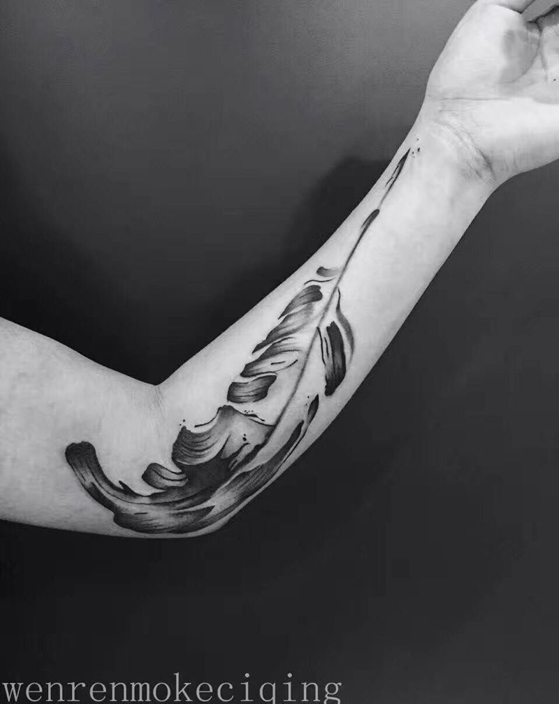 当前位置: 首页 >江苏省扬州市纹身店-纹人墨刻TATTOO纹身图案>泼墨羽毛纹身图片