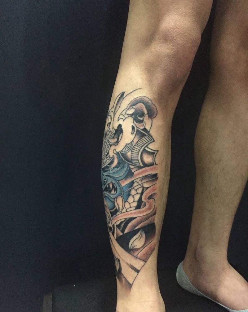 • T网红王老大花腿龙纹身图片_腿部新传统纹身图案