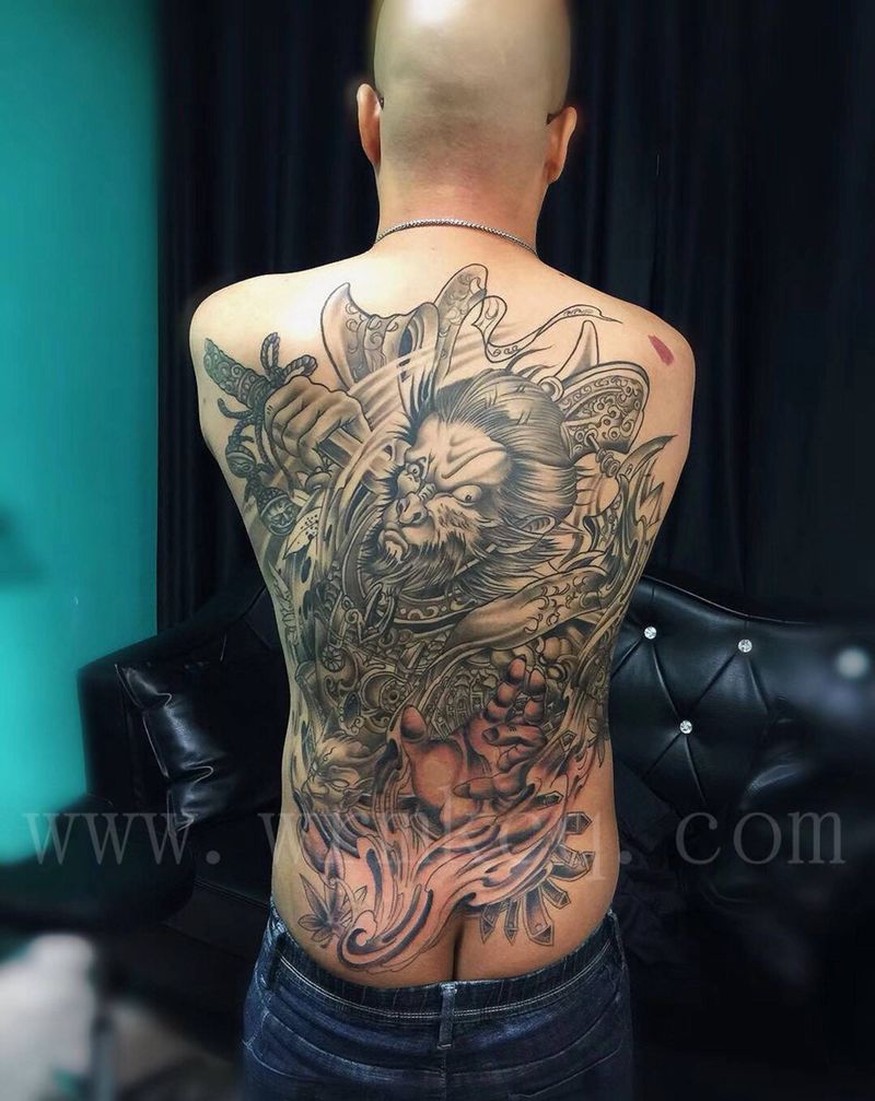 当前位置: 首页 >江苏省扬州市纹身店-纹人墨刻TATTOO纹身图案>猴满背纹身图片