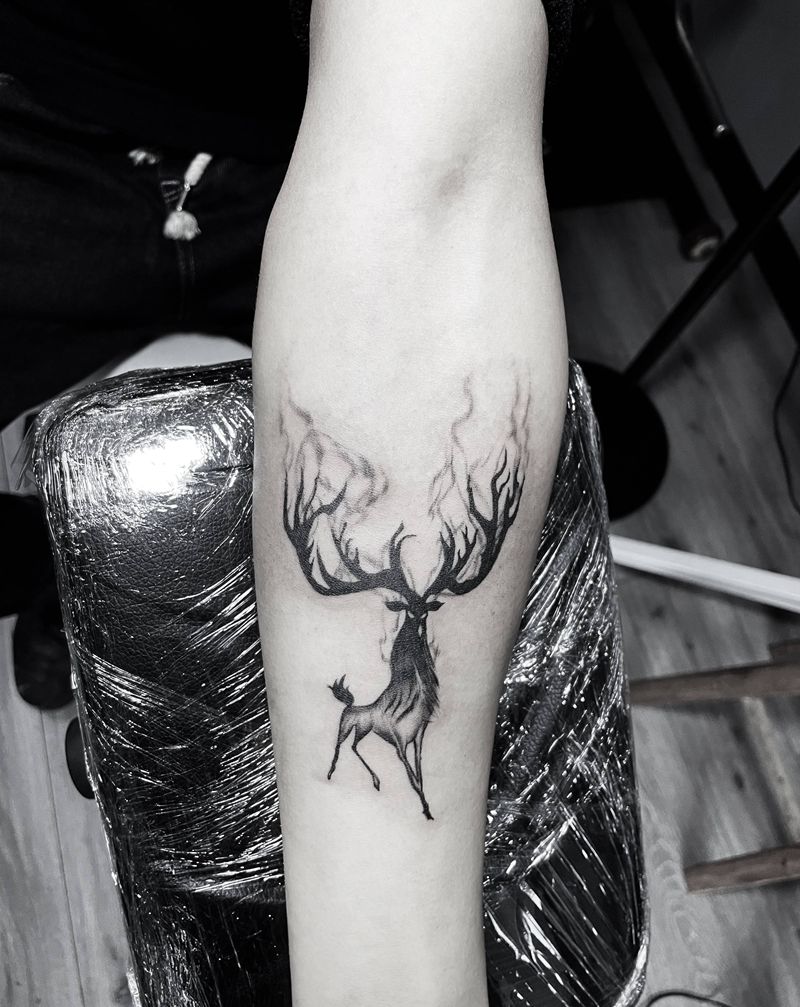 当前位置: 首页 >江苏省泰州市纹身店-颜•刺青 纹身工作室纹身图案>暗鹿纹身图片_手臂纹身图案