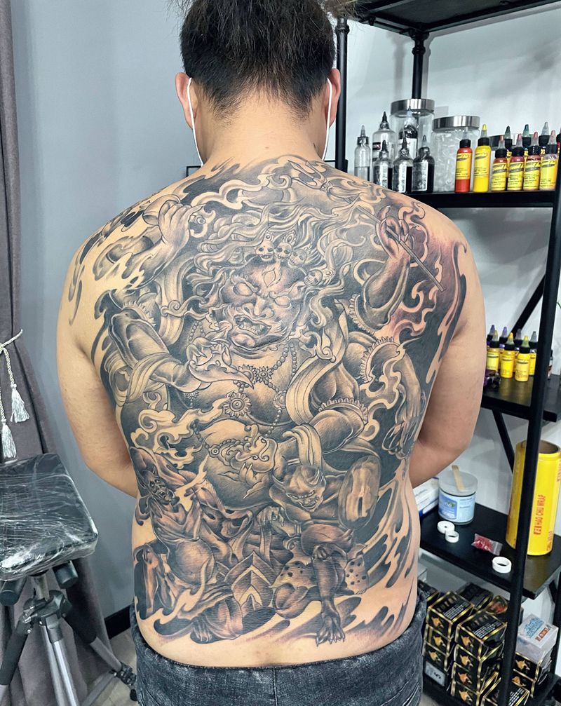 当前位置: 首页 >江苏省泰州市纹身店-颜•刺青 纹身工作室纹身图案>大黑天纹身图片_背部新传统纹身图案