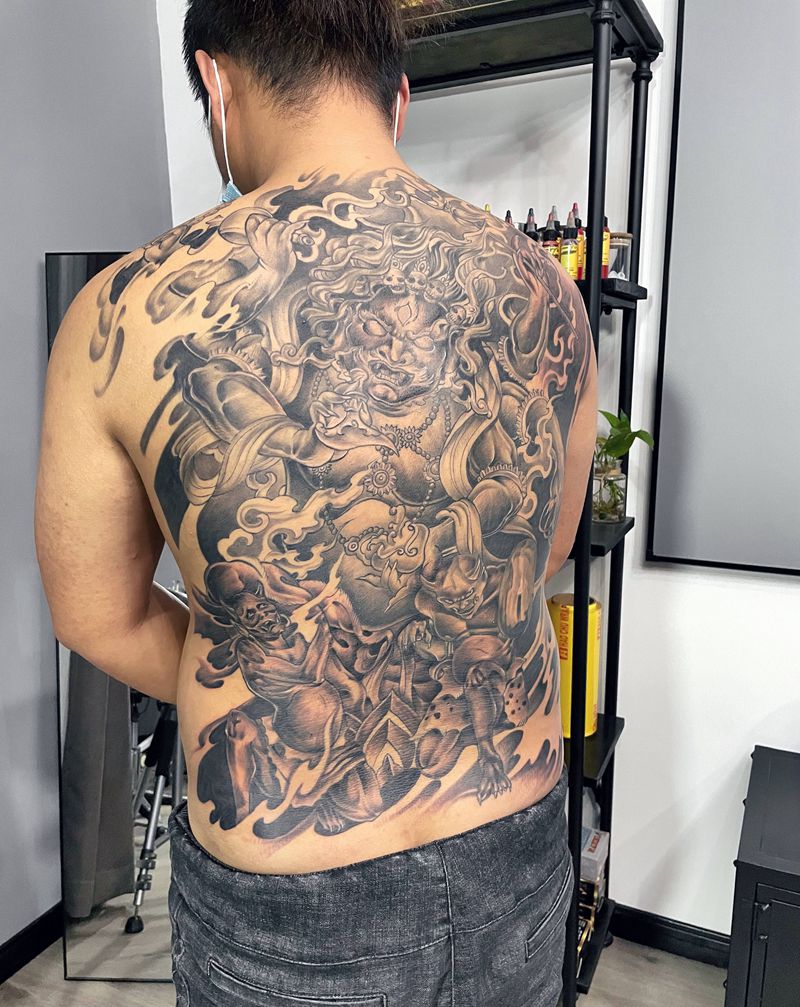 当前位置: 首页 >江苏省泰州市纹身店-颜•刺青 纹身工作室纹身图案>大黑天纹身图片_背部新传统纹身图案