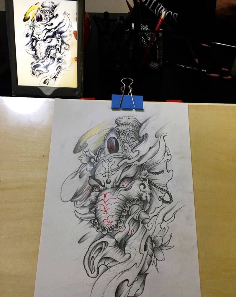 当前位置: 首页 >江苏省泰州市纹身店-颜•刺青 纹身工作室纹身图案>传统艺妓象神纹身图片