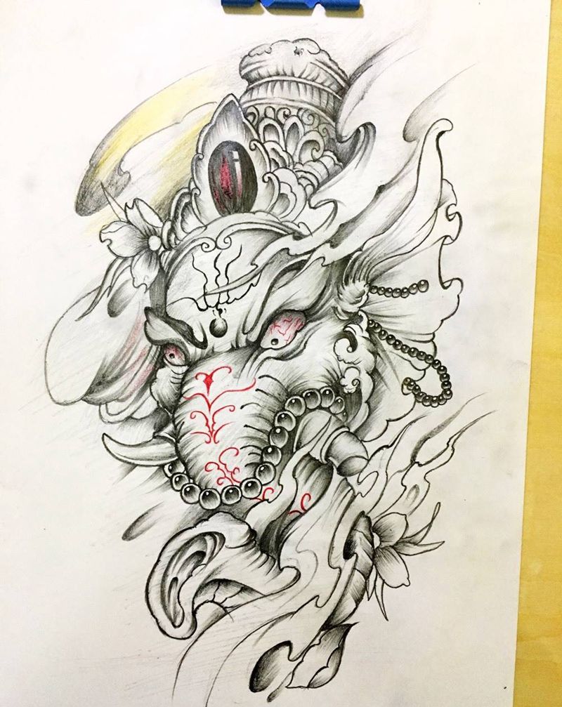 当前位置: 首页 >江苏省泰州市纹身店-颜•刺青 纹身工作室纹身图案>传统艺妓象神纹身图片
