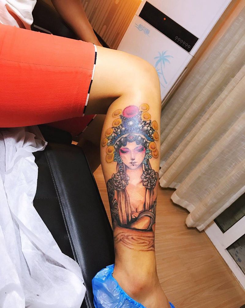 当前位置: 首页 >江苏省泰州市纹身店-颜•刺青 纹身工作室纹身图案>小腿花旦纹身图片