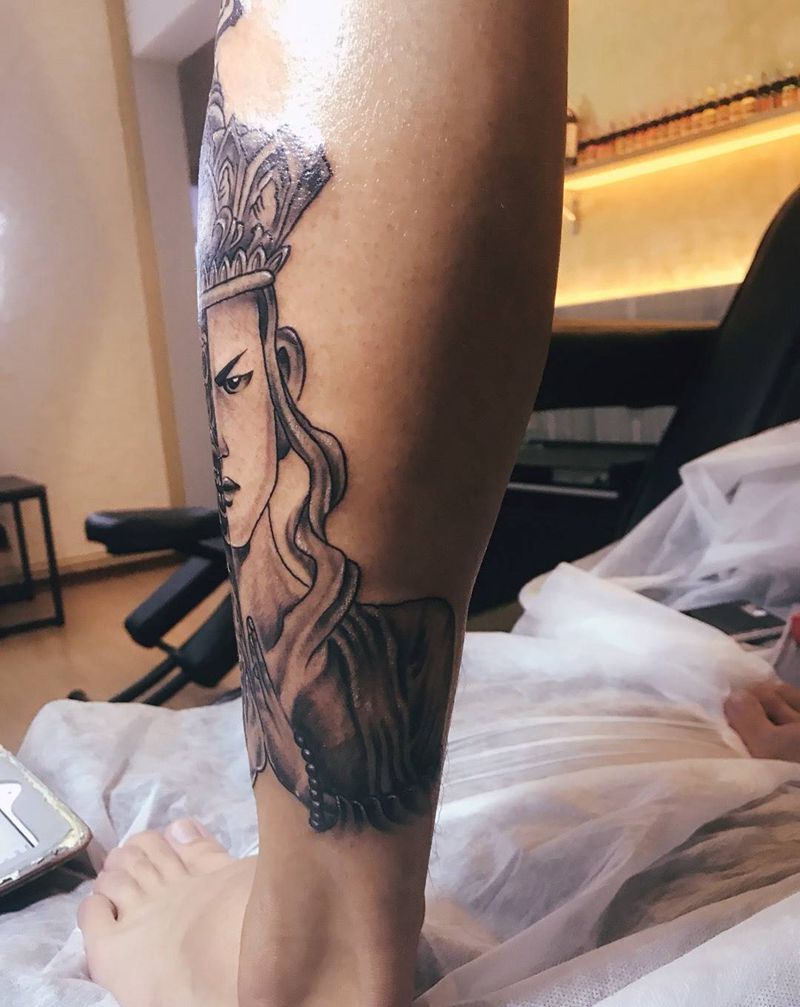 • T网红王老大花腿龙纹身图片_腿部新传统纹身图案