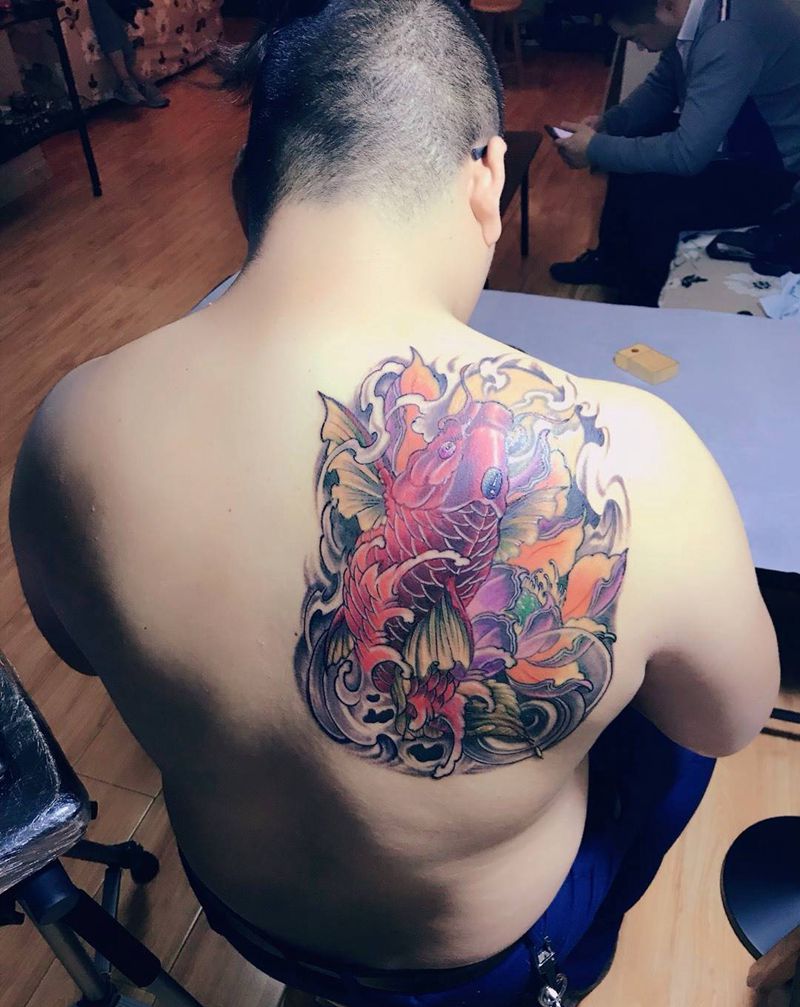 当前位置: 首页 >江苏省泰州市纹身店-颜•刺青 纹身工作室纹身图案>彩色锦鲤纹身图片