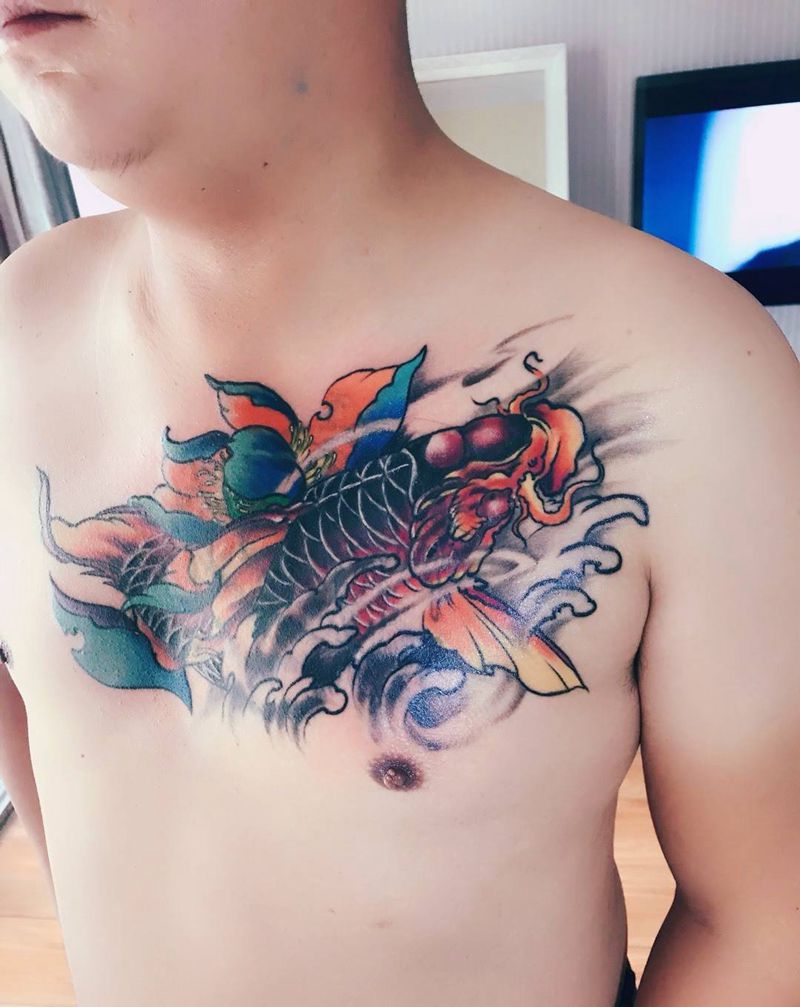 当前位置: 首页 >江苏省泰州市纹身店-颜•刺青 纹身工作室纹身图案>胸口锦鲤!纹身图片