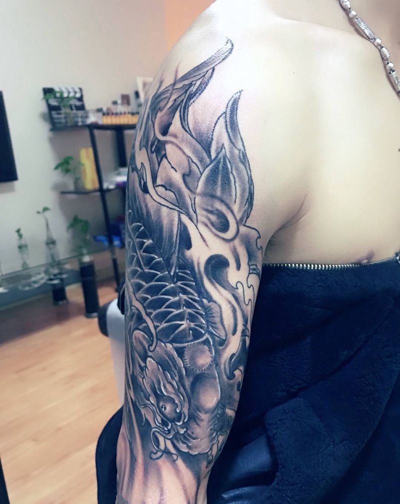 当前位置: 首页 >江苏省泰州市纹身店-颜•刺青 纹身工作室纹身图案>大臂锦鲤纹身图片