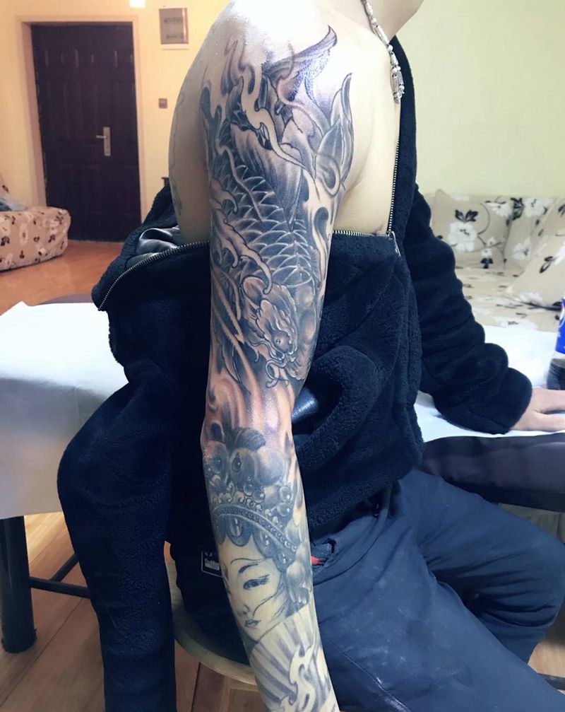当前位置: 首页 >江苏省泰州市纹身店-颜•刺青 纹身工作室纹身图案>大臂锦鲤拼接花臂纹身图片