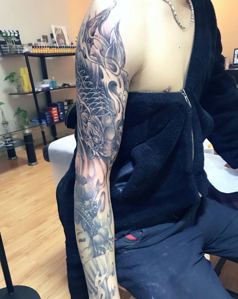 当前位置: 首页 >江苏省泰州市纹身店-颜•刺青 纹身工作室纹身图案>大臂锦鲤拼接花臂纹身图片