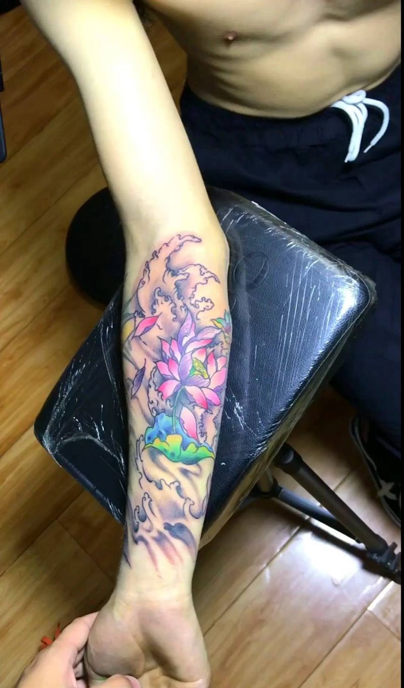 一组15张莲花纹身手