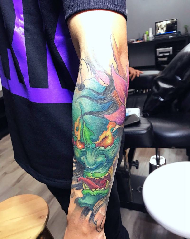 当前位置: 首页 >江苏省泰州市纹身店-颜•刺青 纹身工作室纹身图案>小臂般若纹身图片