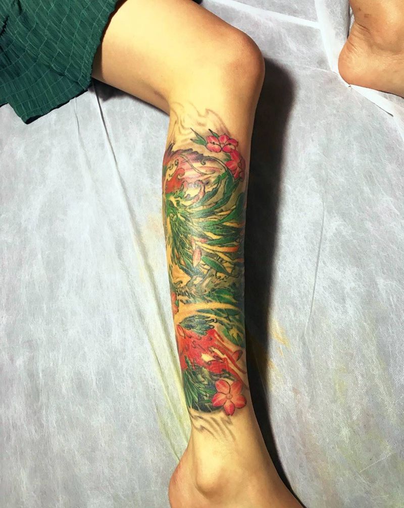 • T网红王老大花腿龙纹身图片_腿部新传统纹身图案