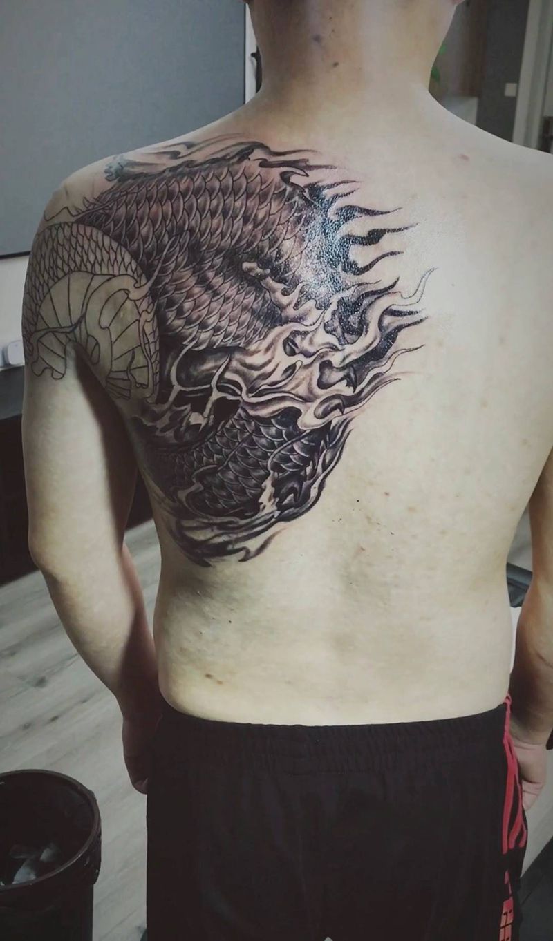 当前位置: 首页 >江苏省泰州市纹身店-颜•刺青 纹身工作室纹身图案>过肩龙纹身图片