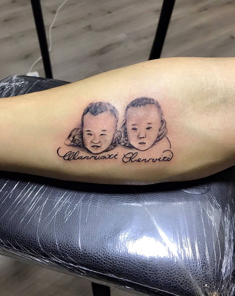 • T家庭图,一家四口生日纪念!纹身图片_手臂纹身图案