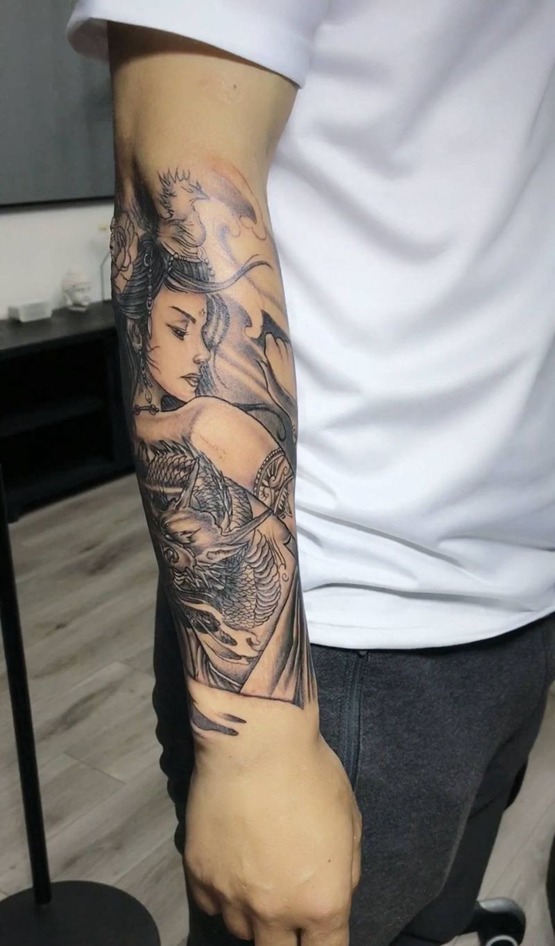 当前位置: 首页 >江苏省泰州市纹身店-颜•刺青 纹身工作室纹身图案>艺妓包小臂纹身图片_手臂新传统纹身图案