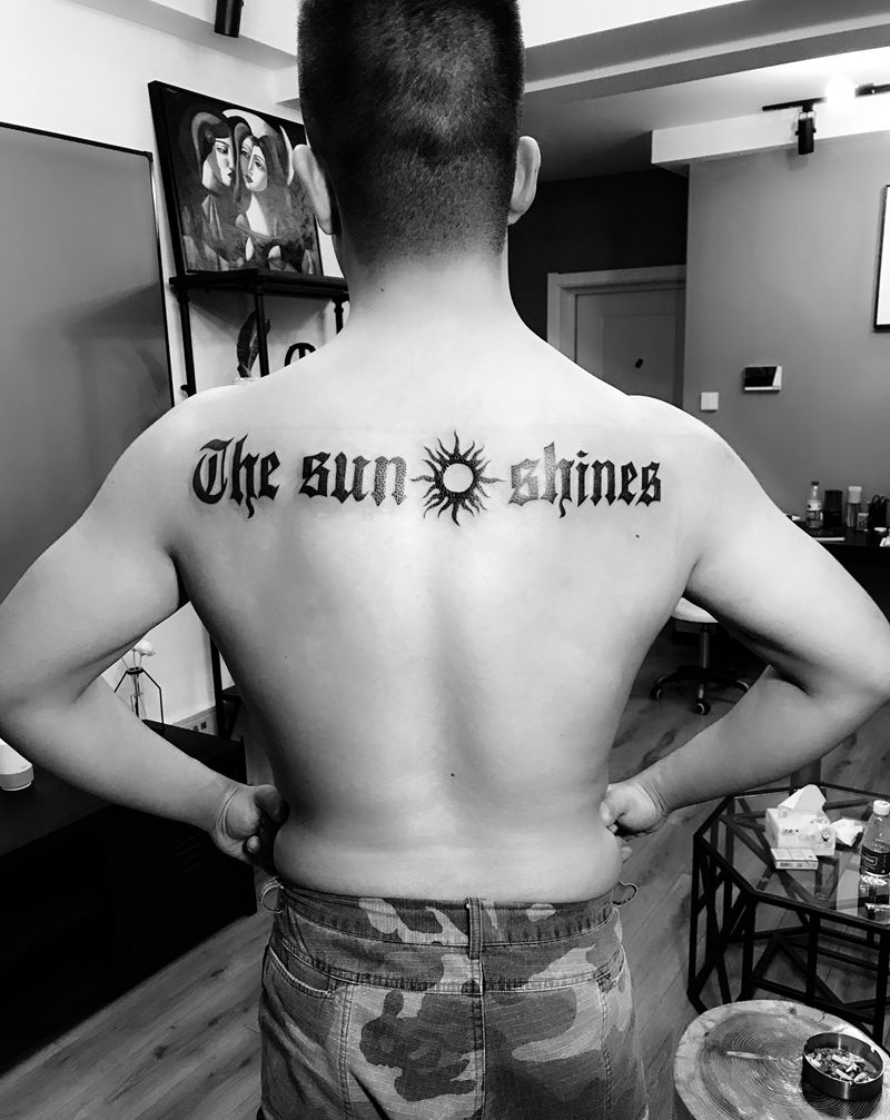 当前位置: 首页 >江苏省泰州市纹身店-颜•刺青 纹身工作室纹身图案>阳光纹身图片_背部字体纹身图案