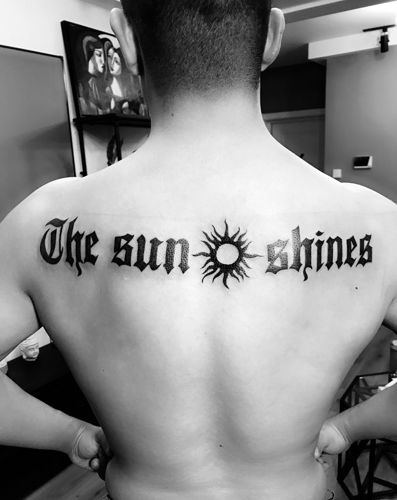 当前位置: 首页 >江苏省泰州市纹身店-颜•刺青 纹身工作室纹身图案>阳光纹身图片_背部字体纹身图案