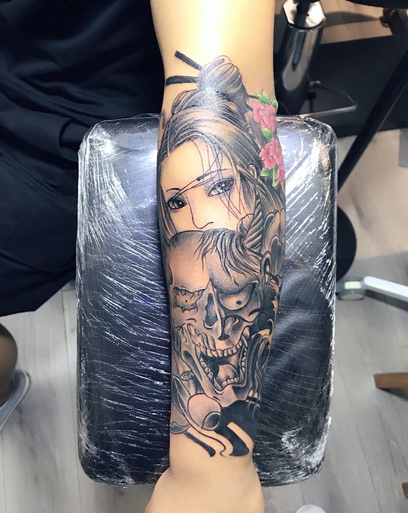 当前位置: 首页 >江苏省泰州市纹身店-颜•刺青 纹身工作室纹身图案>小臂艺妓纹身图片_手臂新传统纹身图案