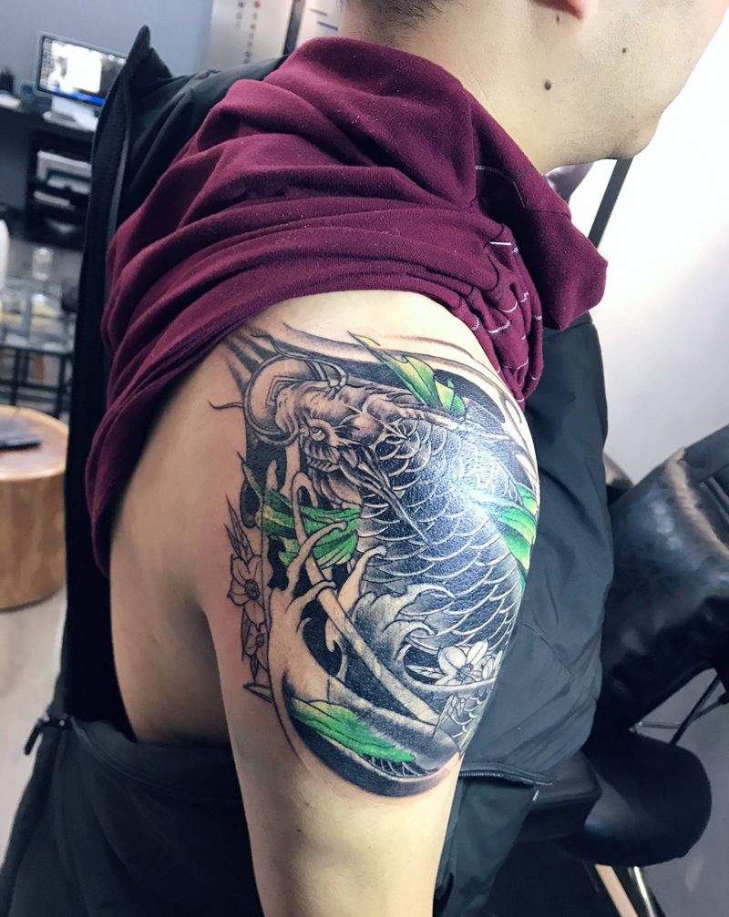 当前位置: 首页 >江苏省泰州市纹身店-颜•刺青 纹身工作室纹身图案>龙鱼纹身图片_手臂新传统纹身图案