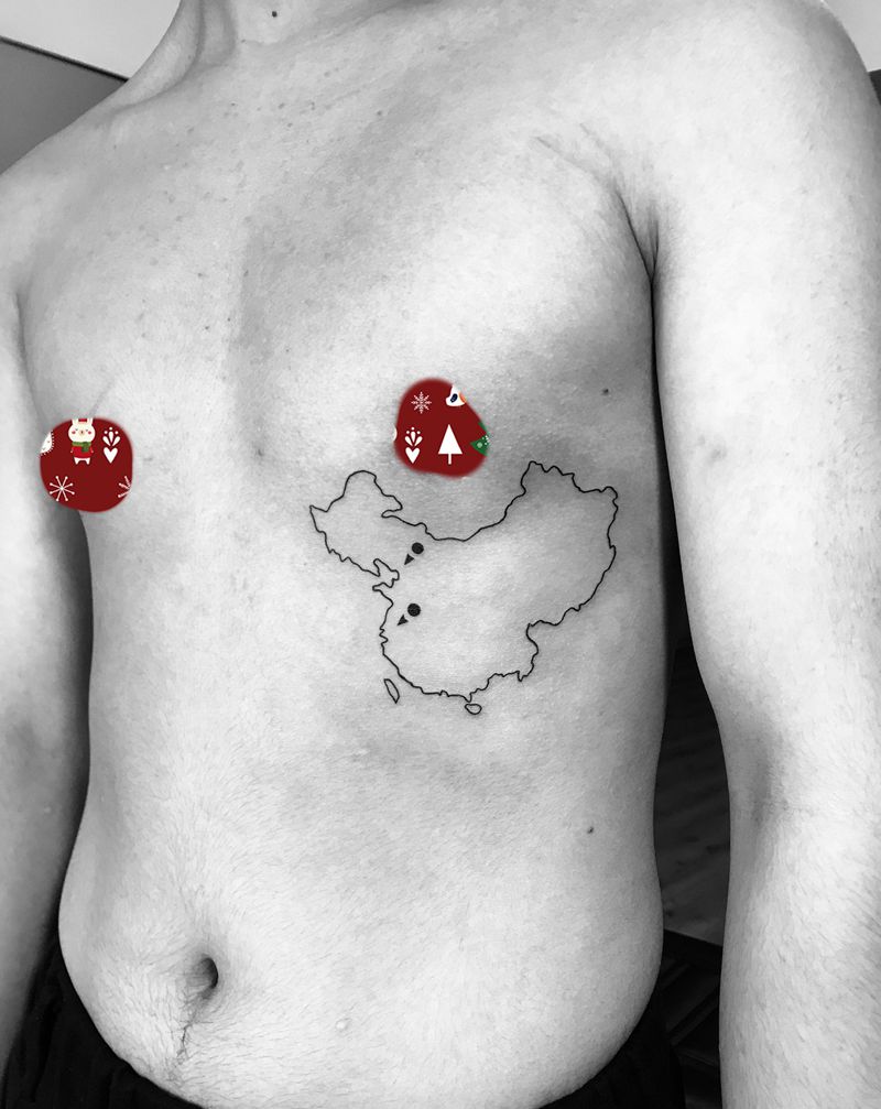 当前位置: 首页 >江苏省泰州市纹身店-颜•刺青 纹身工作室纹身图案>中国地图纹身图片_腹部纹身图案