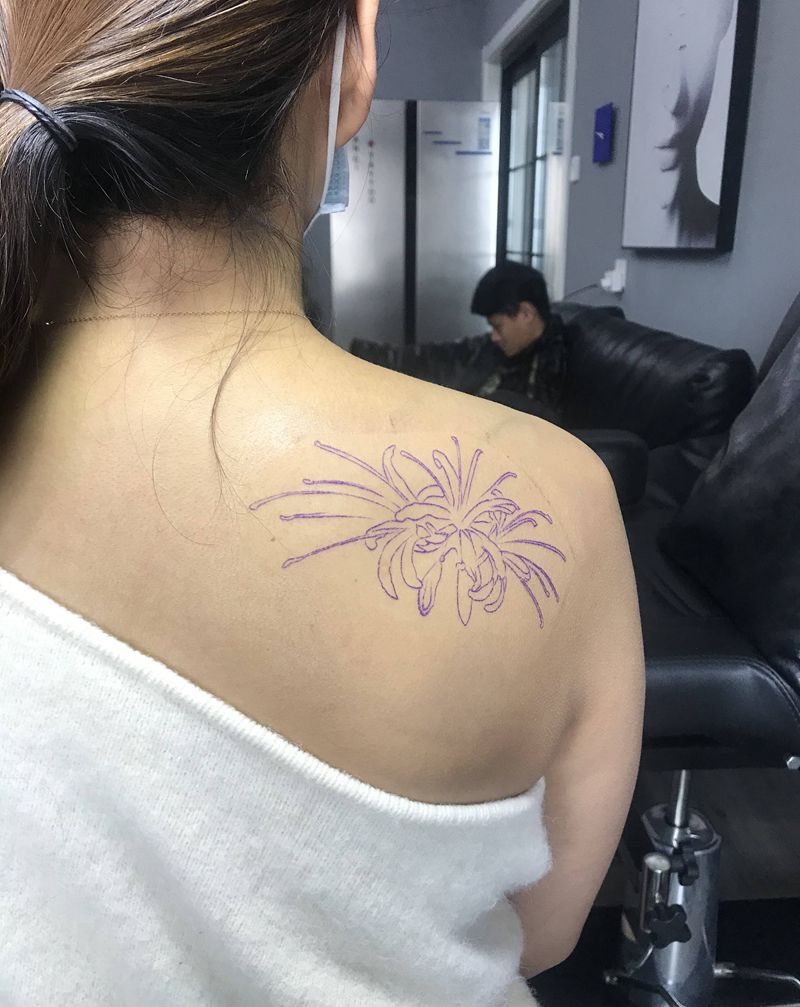 当前位置: 首页 >江苏省泰州市纹身店-颜•刺青 纹身工作室纹身图案>彼岸花纹身图片_肩部水彩纹身图案