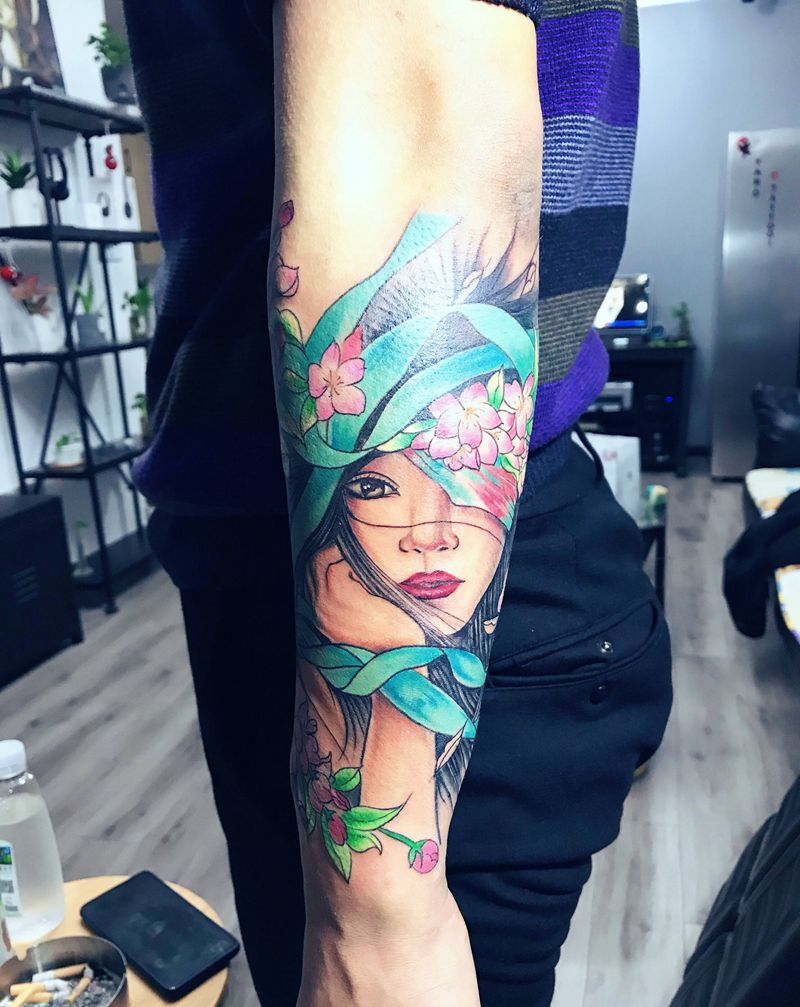 当前位置: 首页 >江苏省泰州市纹身店-颜•刺青 纹身工作室纹身图案>疯女人纹身图片_手臂新传统纹身图案