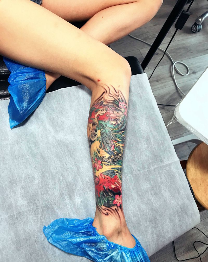 当前位置: 首页 >江苏省泰州市纹身店-颜•刺青 纹身工作室纹身图案>凤凰纹身图片_腿部新传统纹身图案