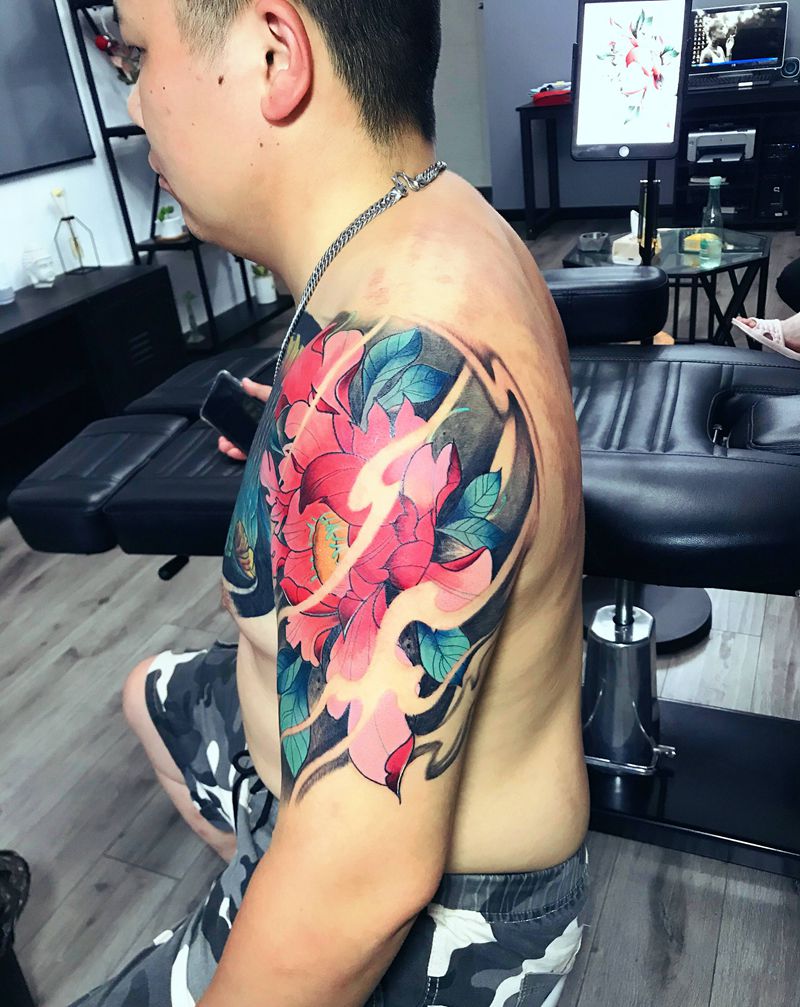 • 女性大花胸纹身_43张霸气漂亮的女性大花胸纹身图案作品