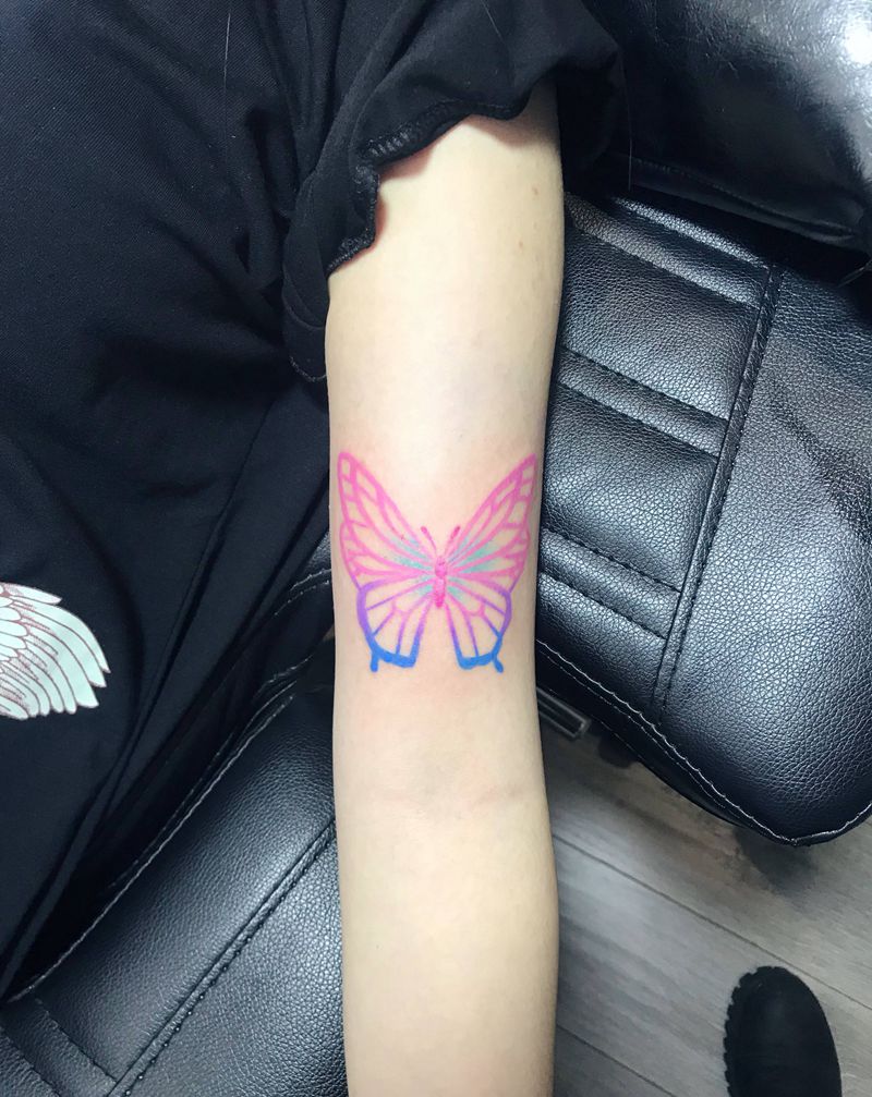 当前位置: 首页 >江苏省泰州市纹身店-颜•刺青 纹身工作室纹身图案>蝶纹身图片_手臂图腾纹身图案