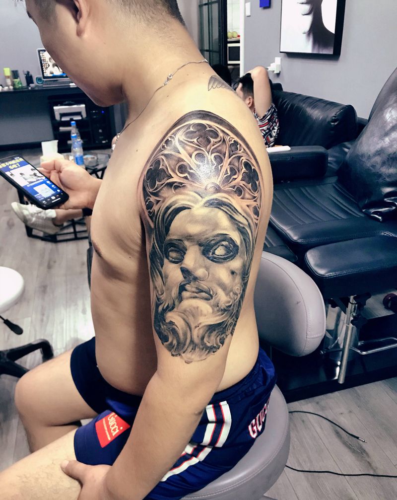 当前位置: 首页 >江苏省泰州市纹身店-颜•刺青 纹身工作室纹身图案>耶稣纹身图片_手臂欧美写实纹身图案
