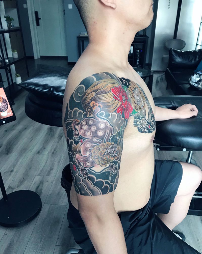 • 纹身吧推荐的披肩图腾半胛纹身图案作品展示