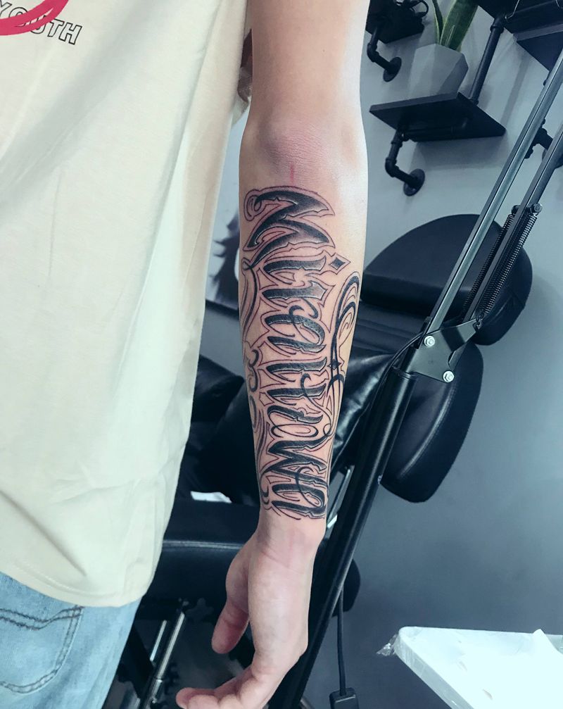 当前位置: 首页 >江苏省泰州市纹身店-颜•刺青 纹身工作室纹身图案>花体英文纹身图片_手臂纹身图案