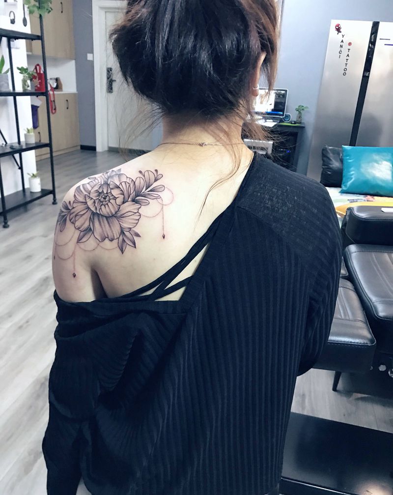 素花纹身图片_肩部纹身图案