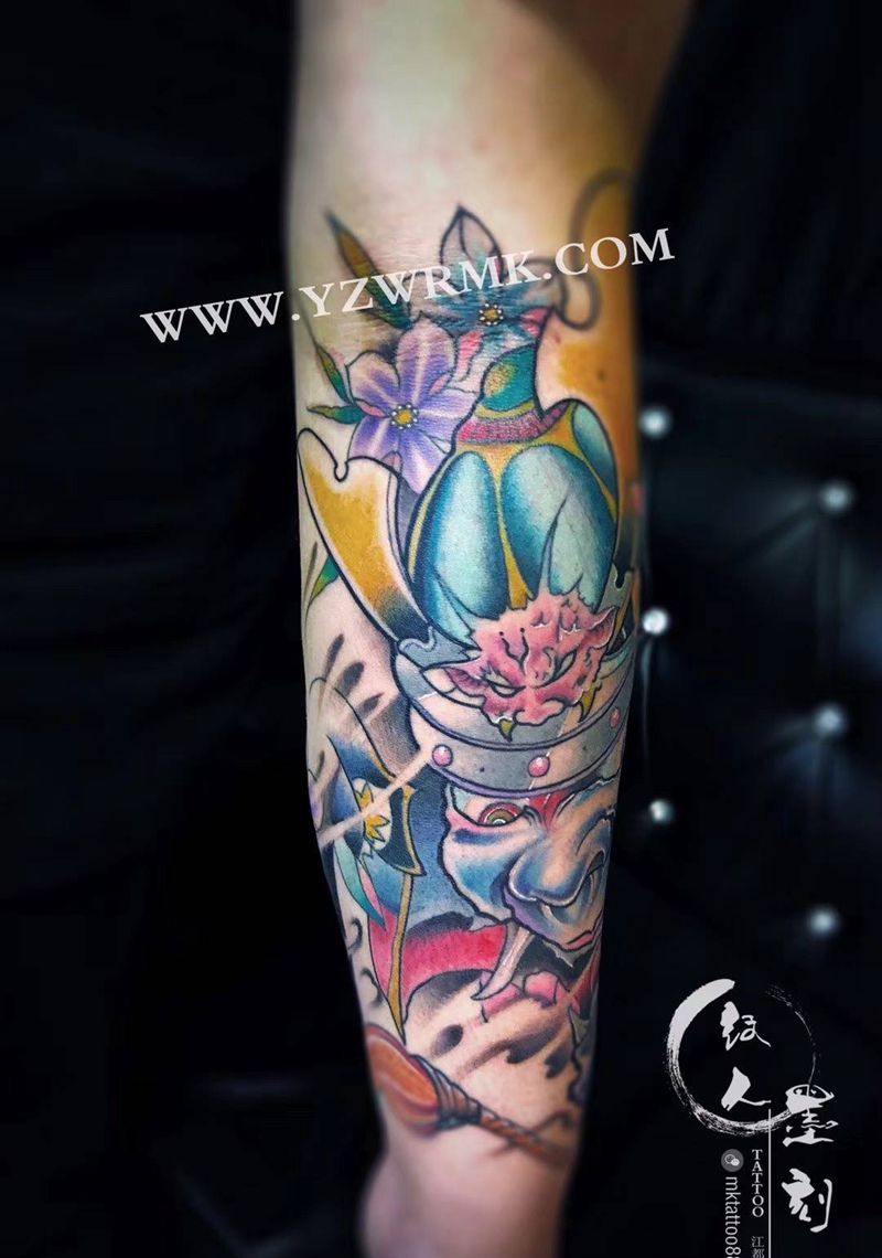 当前位置: 首页 >江苏省扬州市纹身店-纹人墨刻TATTOO纹身图案>鬼武士包小臂纹身图片