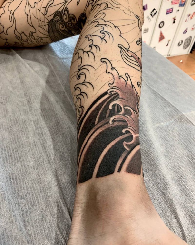 • T网红王老大花腿龙纹身图片_腿部新传统纹身图案