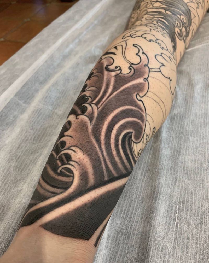 • T网红王老大花腿龙纹身图片_腿部新传统纹身图案
