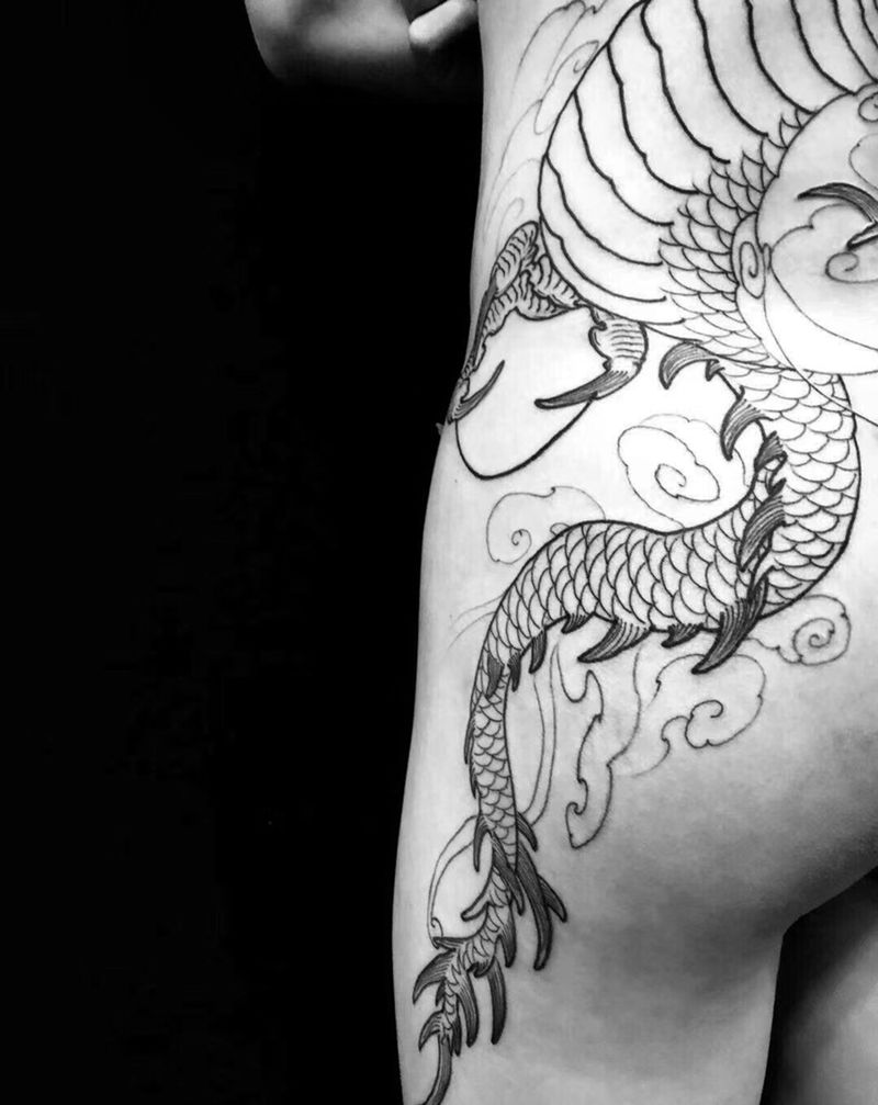 • T网红王老大花腿龙纹身图片_腿部新传统纹身图案