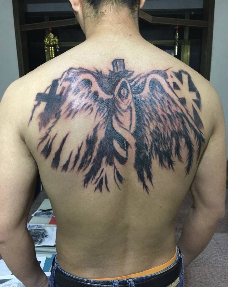 • 纹身吧推荐的披肩图腾半胛纹身图案作品展示