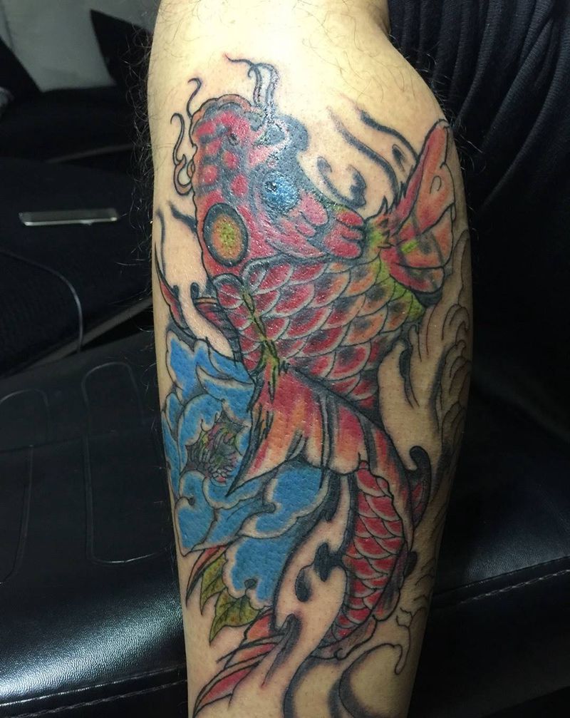 当前位置: 首页 >江苏省泰州市纹身店-绣龙堂刺青纹身图案>小腿锦鲤纹身图片