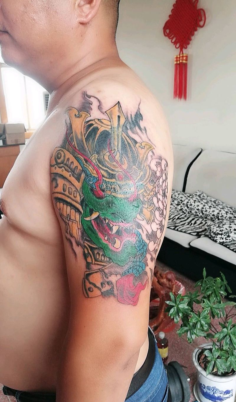 当前位置: 首页 >江苏省泰州市纹身店-绣龙堂刺青纹身图案>鬼武士纹身图片_肩部新传统纹身图案