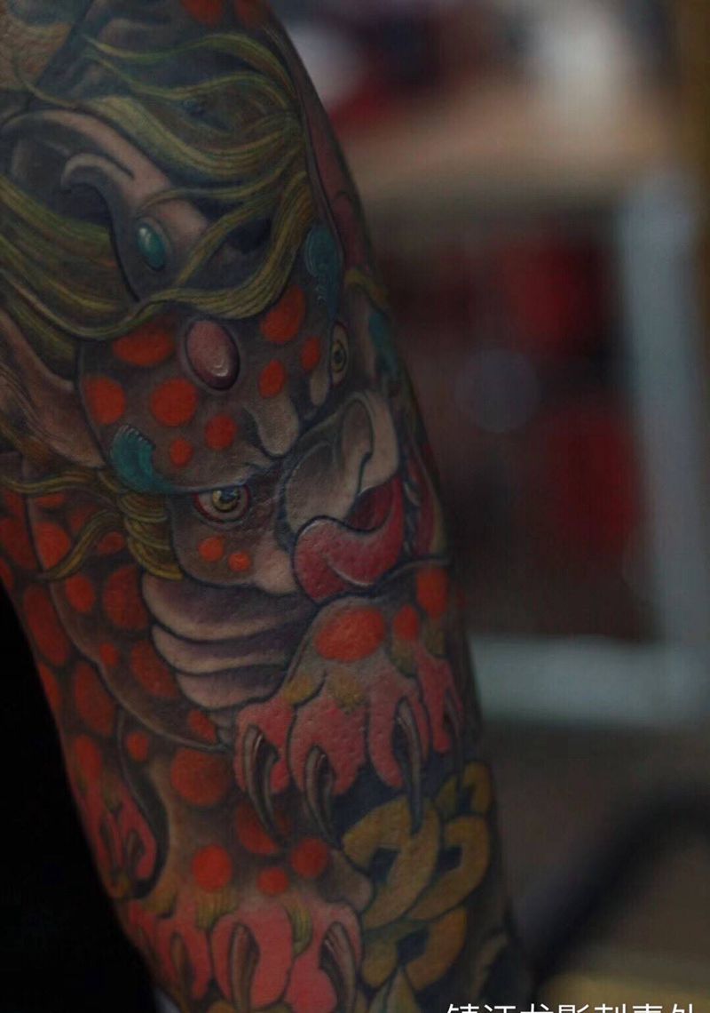 • T网红王老大花腿龙纹身图片_腿部新传统纹身图案