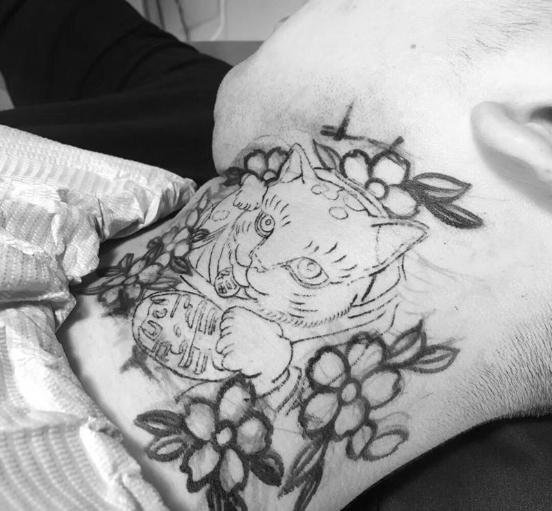 • T招财猫纹身图片