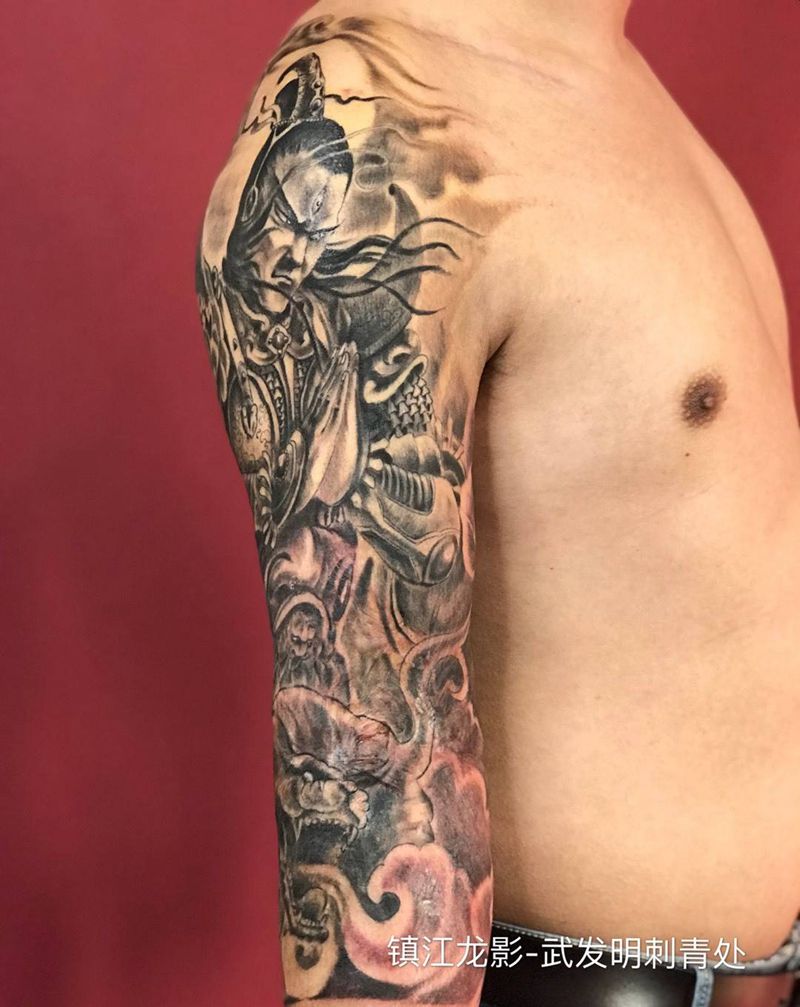 当前位置: 首页 >江苏省镇江市纹身店-镇江龙影纹身纹身图案>盖疤图:二郎真君七分袖纹身图片