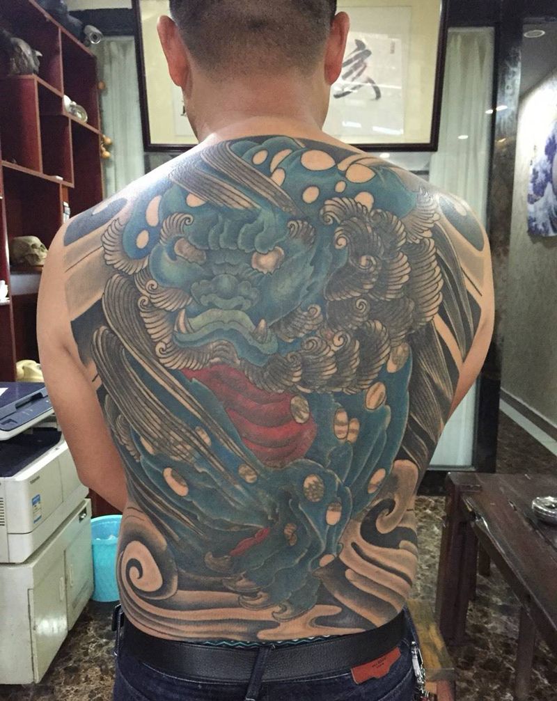 当前位置: 首页 >江苏省宿迁市纹身店-玄龙堂刺青纹身图案>唐狮遮盖 大龙纹身图片
