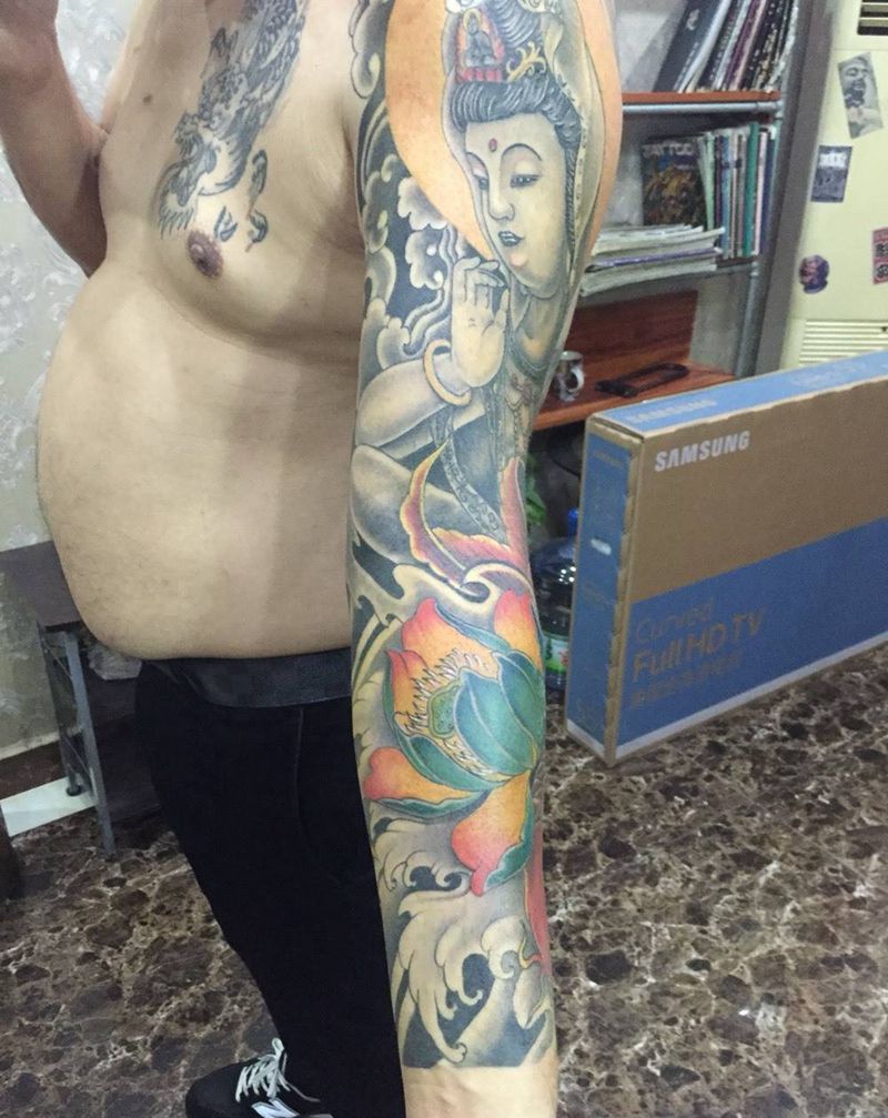 当前位置: 首页 >江苏省宿迁市纹身店-玄龙堂刺青纹身图案>观音花臂纹身图片